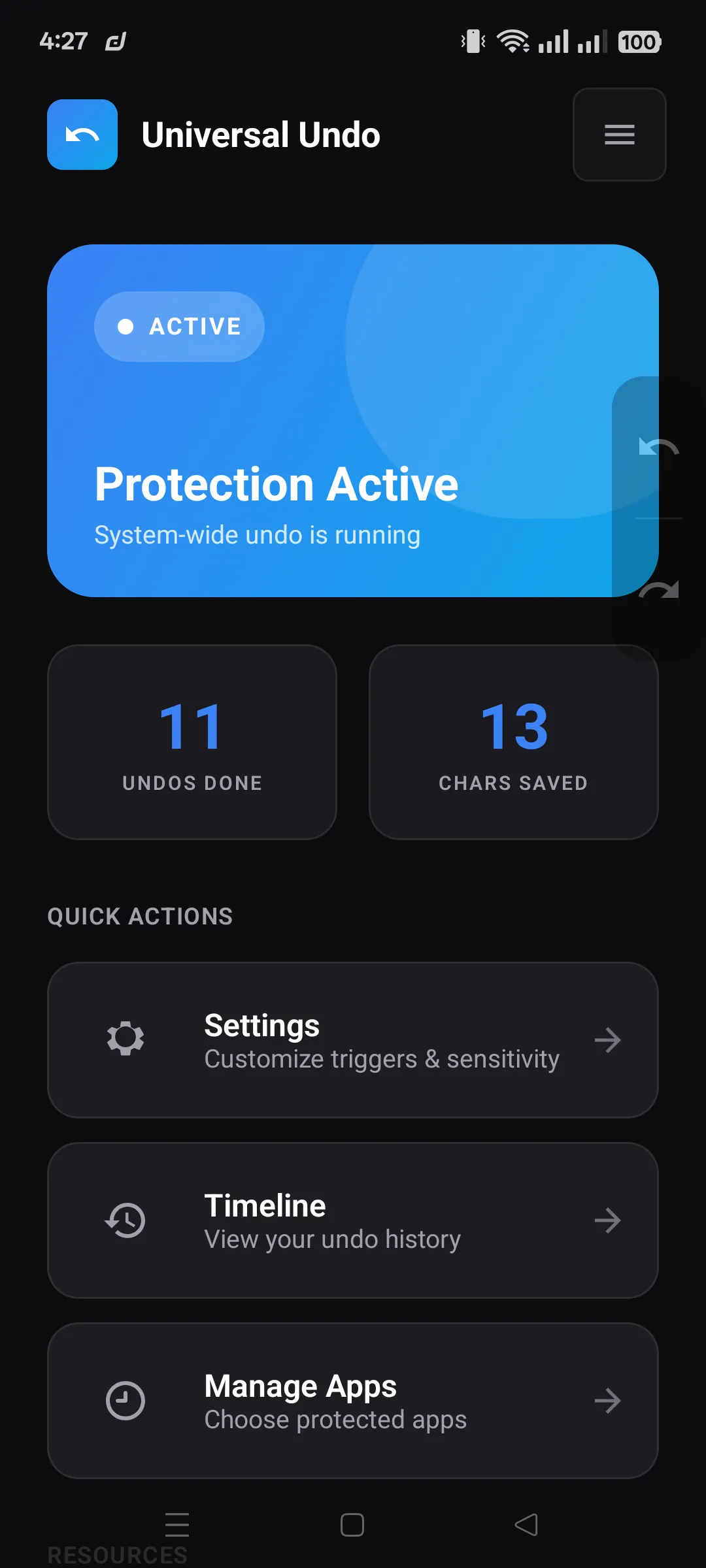 Accidentally deleted a long message? Universal Undo saves every keystroke locally. Shake to undo — instantly — in any app.